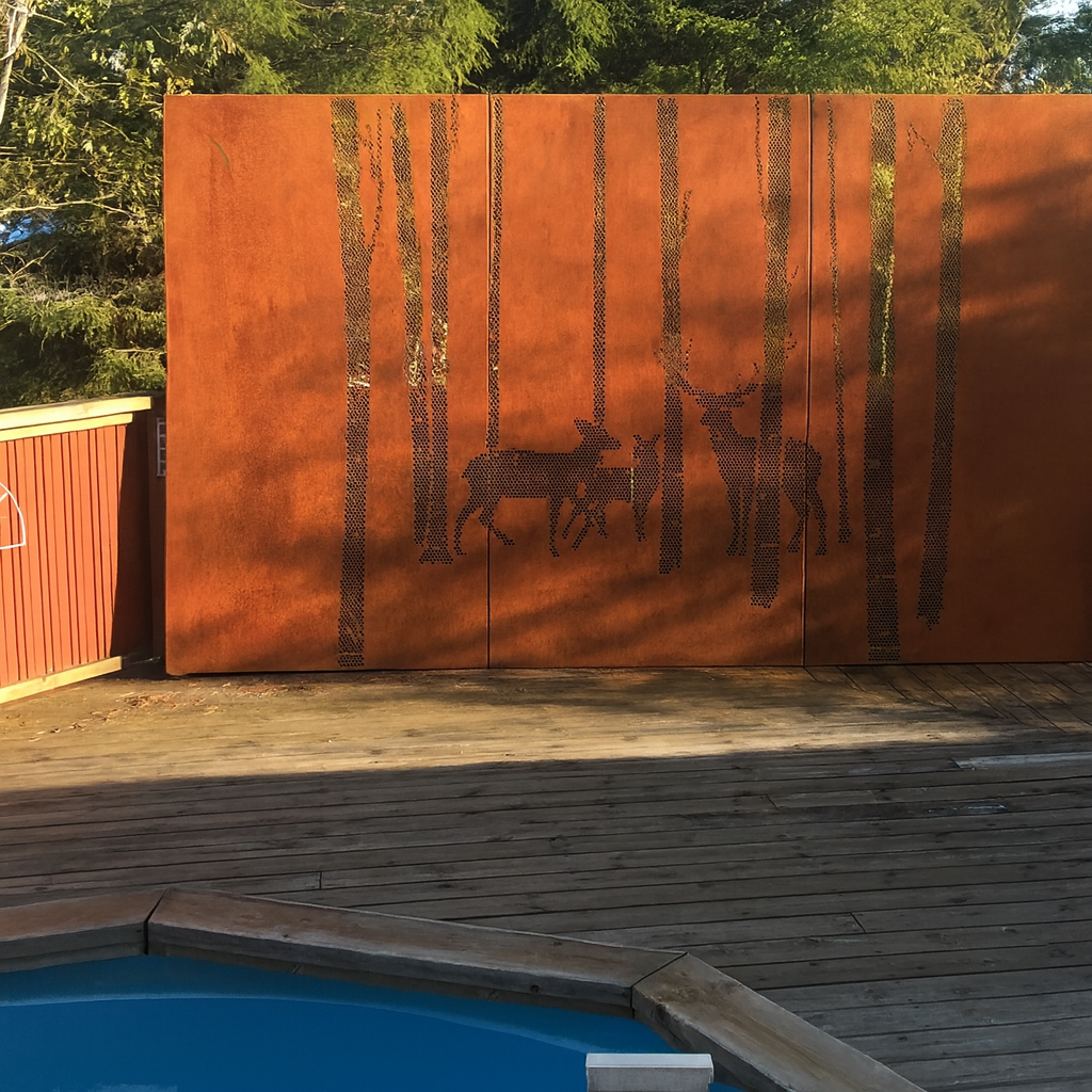 Insynsskydd. Skärmvägg. Fasaddesign. Metallperforerat. Hållbart. COR-TEN®. Underhållsfritt dekorativt till din trädgård, altan, pool eller ditt spa.