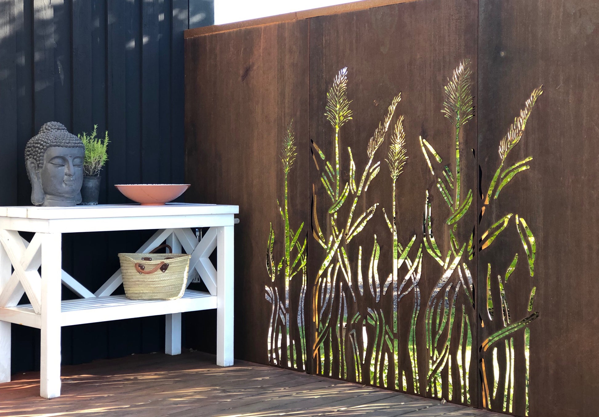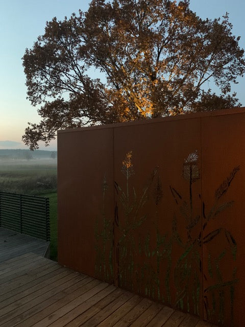Exclusive laser cut COR-TEN® Privacy Screen. Decorative, maintenance-free and the perfect architectural element to any garden or backyard.