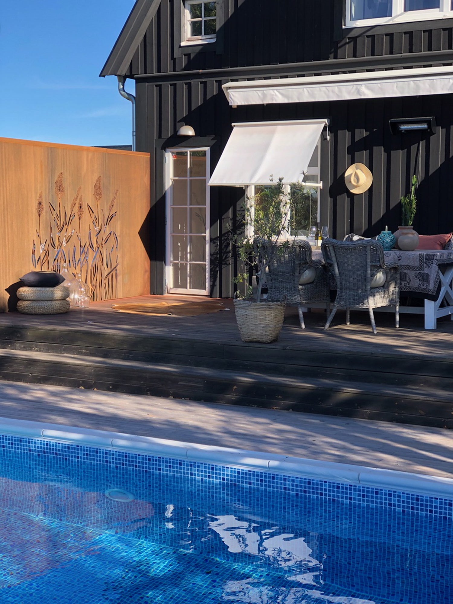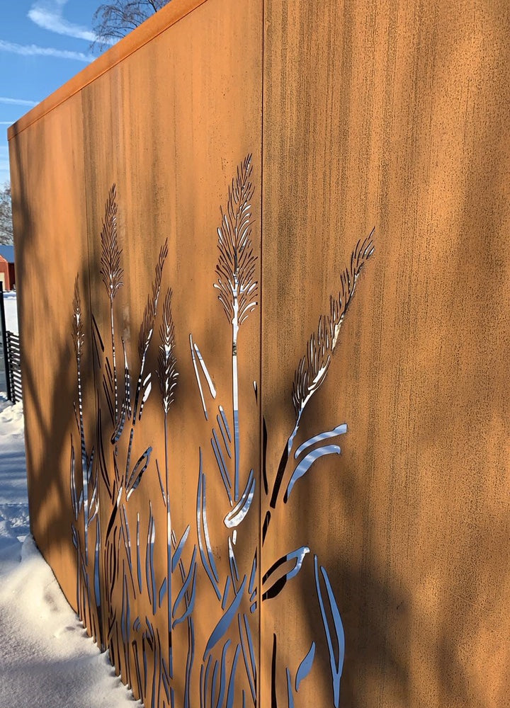 Insynsskydd. Skärmvägg. Fasad design. Hållbart. COR-TEN®. Underhållsfritt dekorativt till din trädgård, altan, pool eller ditt spa.